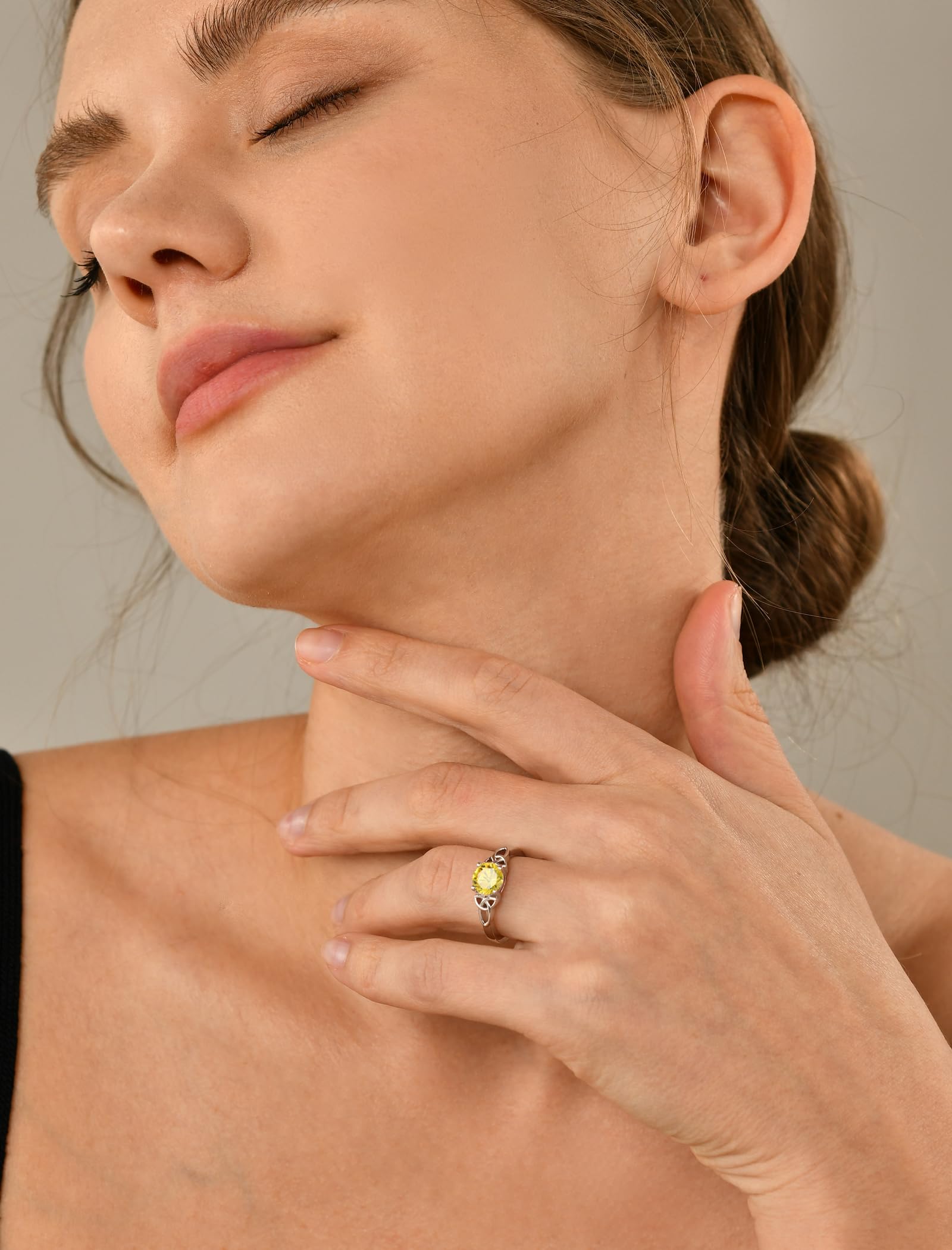 YL Celtic Knot Rings for Women 925 Sterling Silver Round Cut Birthstone Statement Ring