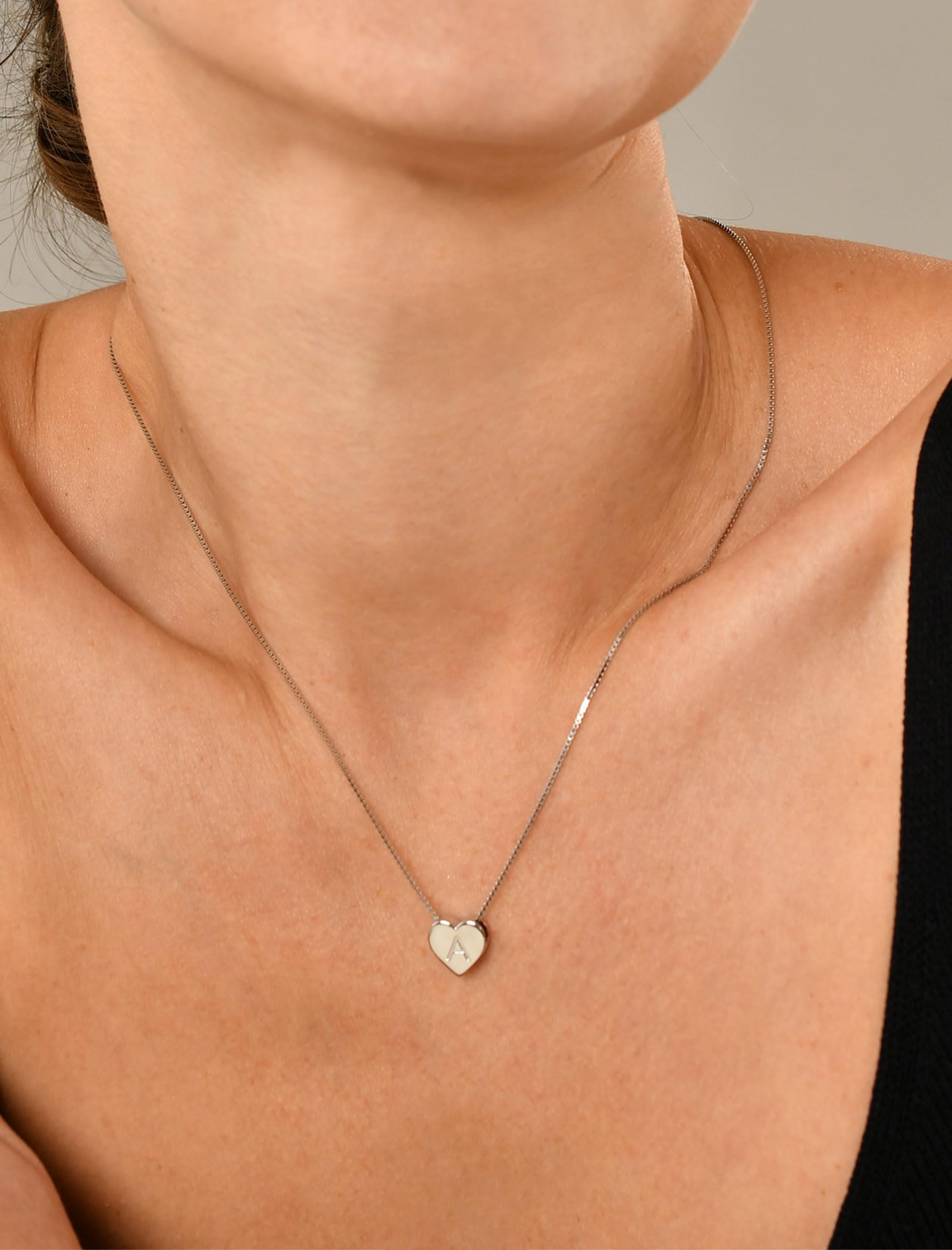 YL Initial Necklace 925 Sterling Silver Heart Letter Pendant A-Z Alphabet Cubic Zirconia Jewelry for Women—