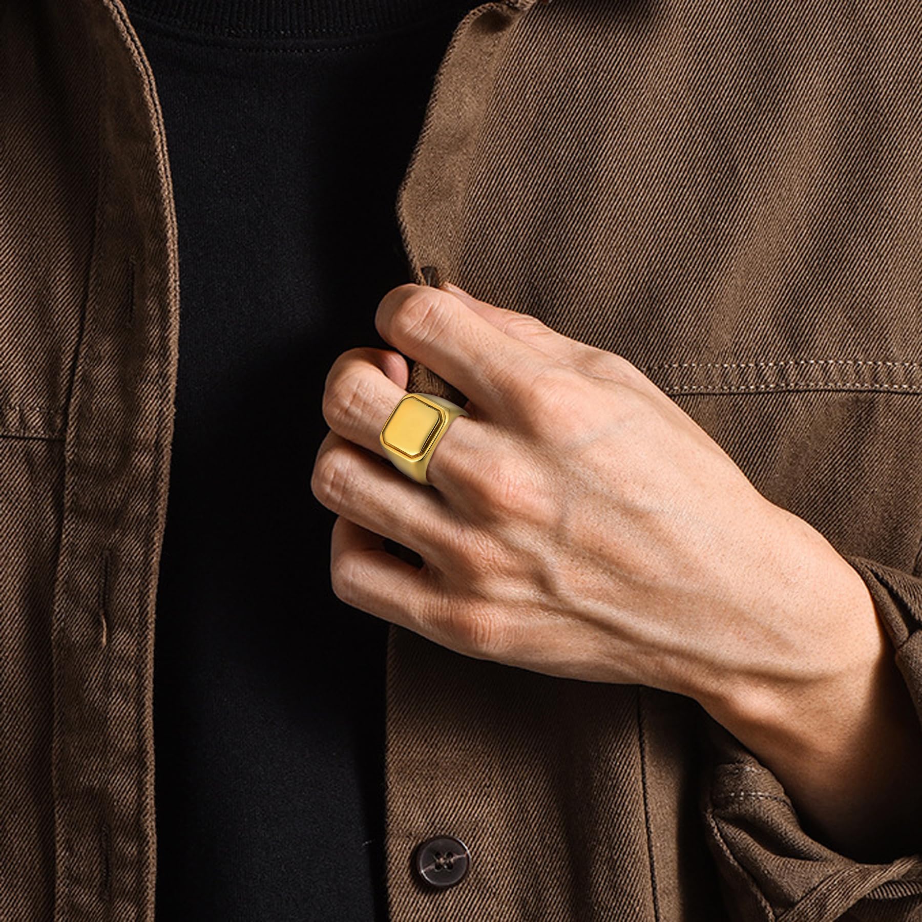 YL Men's Square Signet Rings Titanium Steel High Polished Rings White Gold/Gold/Black Plated Statement Band Wedding Jewelry