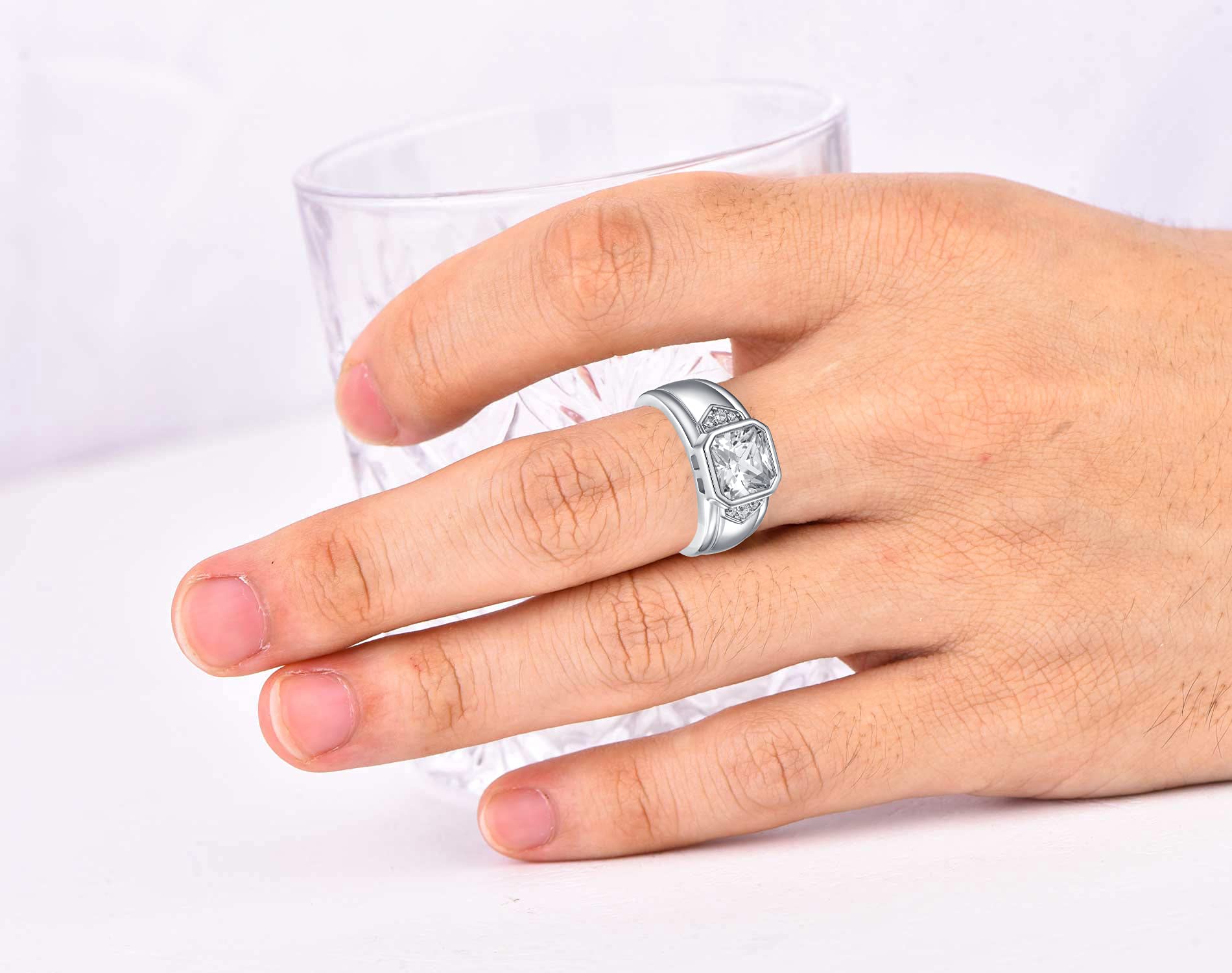 YL Men's Wedding Band Engagement Ring 925 Sterling Silver with 8X8mm AAA Cubic Zirconia Ring Anniversary Jewelry
