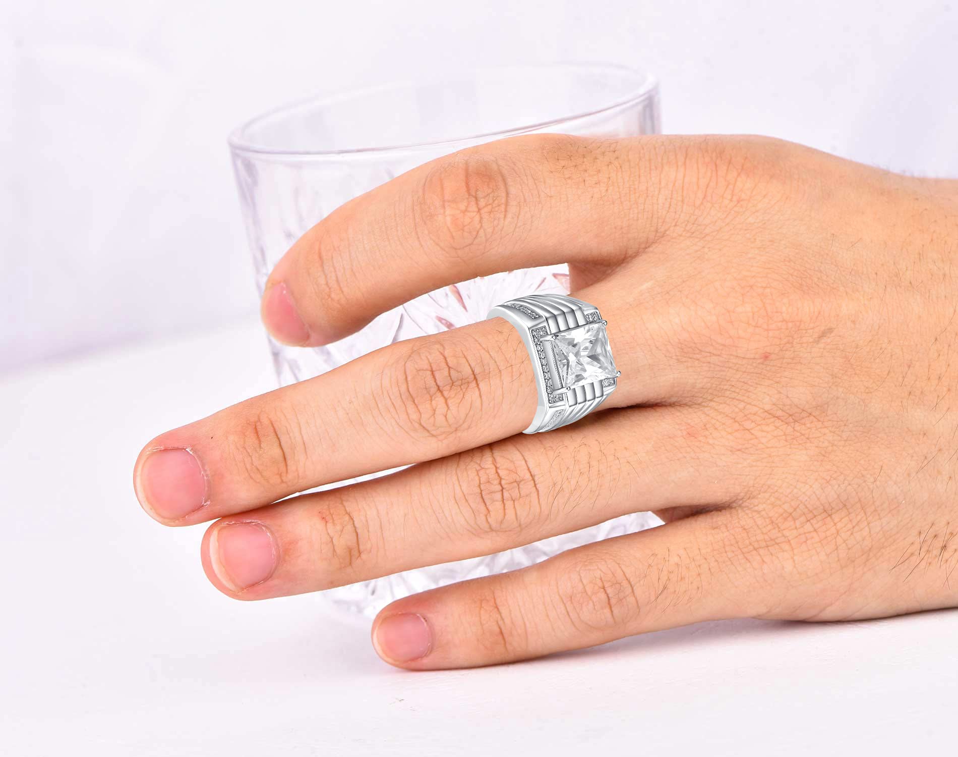 YL Men's Wedding Band Engagement Rings 925 Sterling Silver with 9X11mm AAA Cubic Zirconia Ring Anniversary Jewelry
