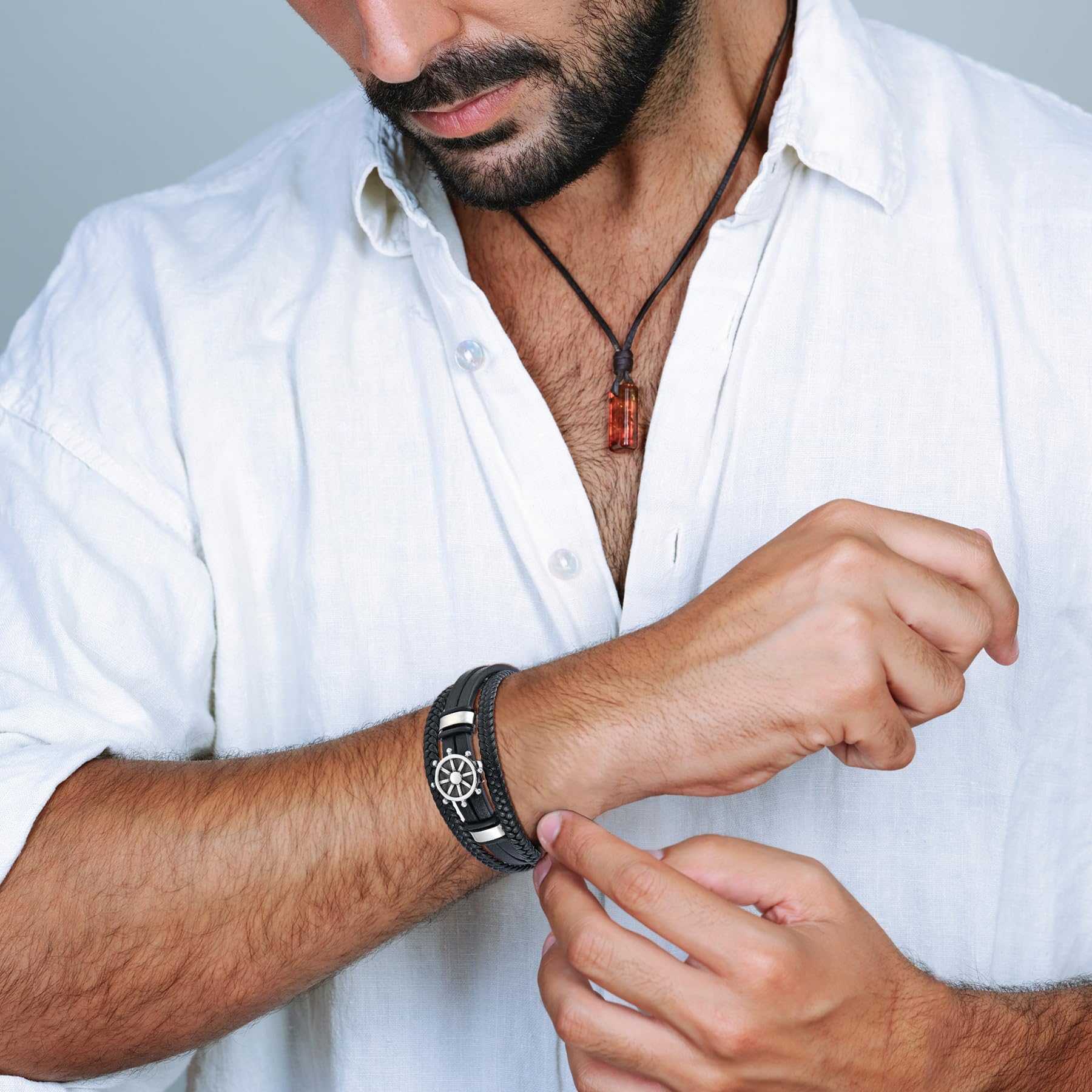 - Stunning Design: YL viking compass anchor black leather bracelet for men are made of hand-braided by skilled artisans, 316L stainless steel, upgrade buckle clasp, easy close and open